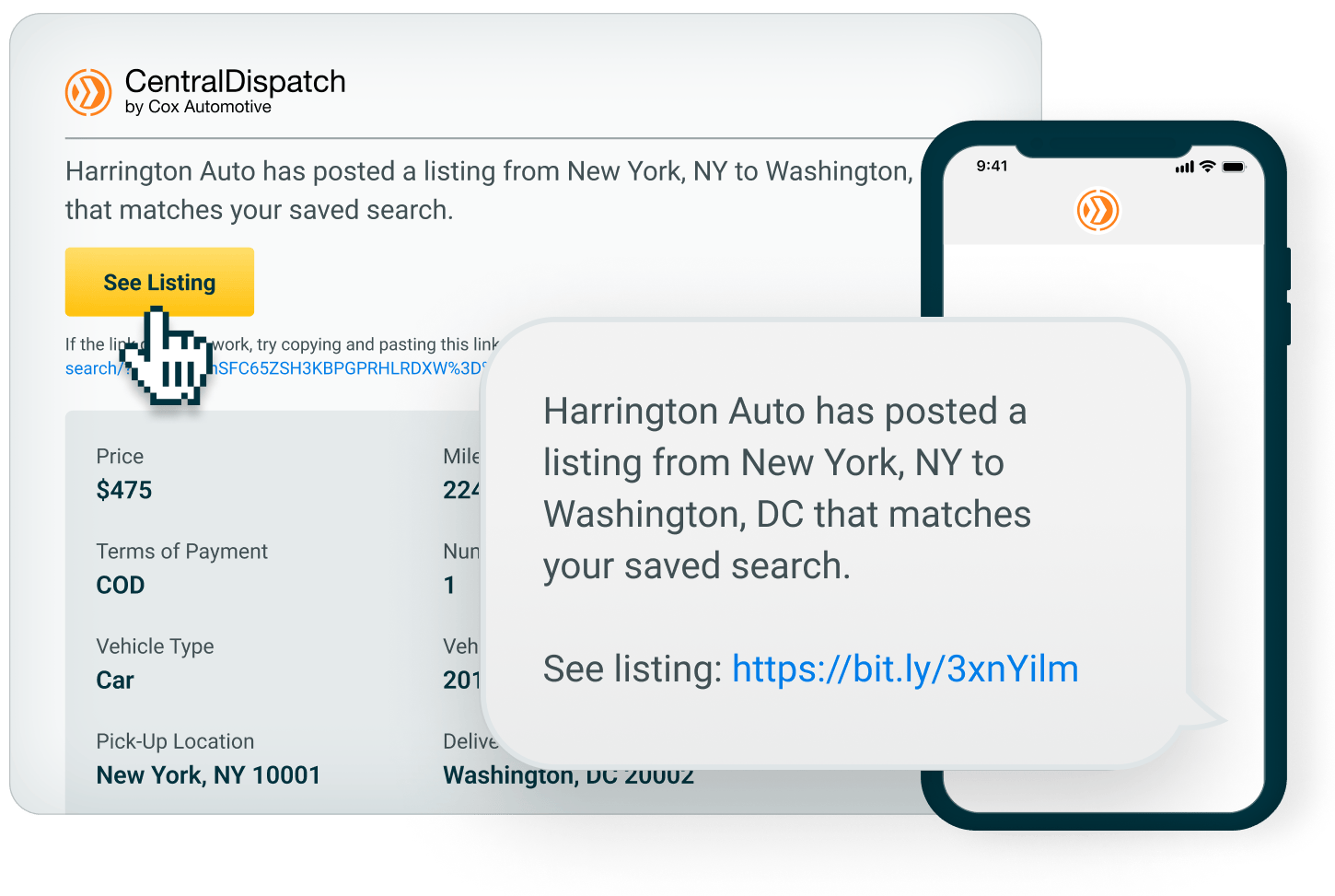 Search and apply for loads from any mobile device. Get notified when new listings that match any of your saved searches are posted.